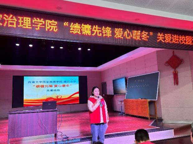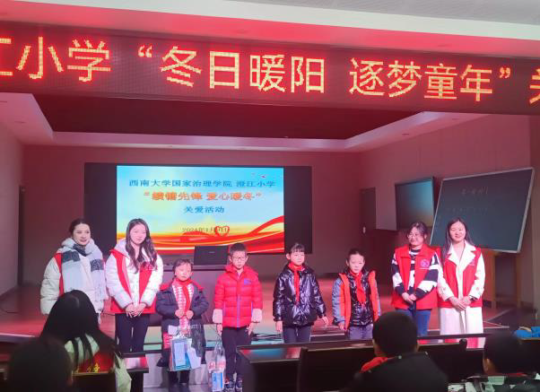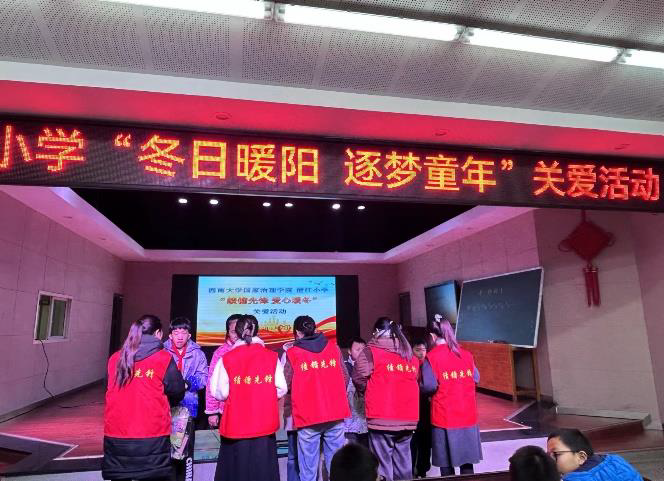 发布时间: 2024-01-11 16:55:09 已阅读:朝阳晨曦,前路星光灿烂;冬日严寒,爱心情暖学生。 1月8日上午,1946伟德国际源自英国寒假社会实践团来到澄江镇小学校开展“绩镛先锋 爱心暖冬”关爱进校园活动。澄江镇小学校主管学生资助工作的彭开强老师、大队辅导员邹琴老师,学院教师曾莉、蒋梓莹老师一同出席本次活动。