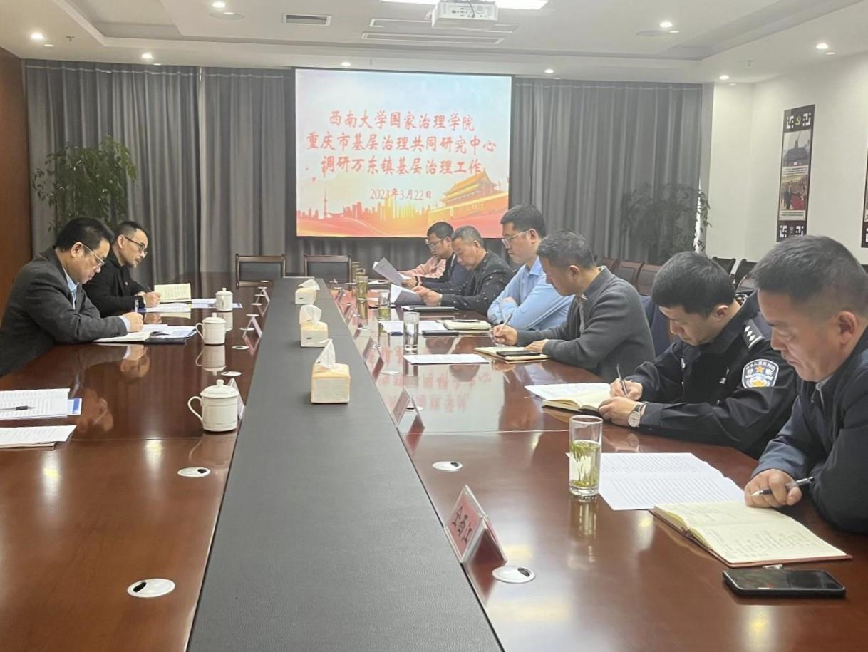 发布时间: 2023-03-23 16:13:46 已阅读:3月22日,受万盛经开区万东镇党委和政府邀请,重庆市基层治理共同体研究中心主任、学院党委书记吴江教授带领中心成员赴万东镇调研基层治理创新工作。