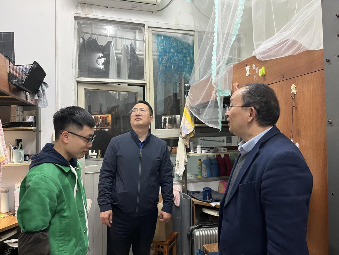 在毕业生寝室,学院领导详细询问毕业生求职进展,求职困难和支持资源需求,鼓励毕业生要多渠道择业、多途径求职、多元化就业。在2022级寝室,郭美云副院长详细了解学生生源地,居住习惯,研究生学习节奏的适应性等情况,鼓励新生早规划,早行动,不负韶华不负春。