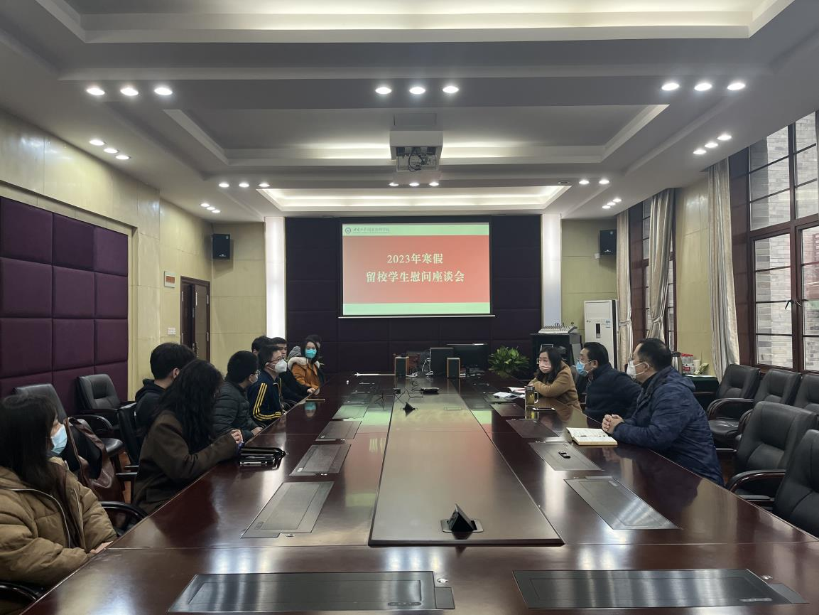 发布时间: 2023-01-12 16:20:19 已阅读:1月12日上午,学院在3201会议室召开2022年寒假留校学生慰问座谈会,学院党委书记吴江,党委副书记王晖、李长松,辅导员代表汪全洲,以及全体留校本科生、研究生共同参加。座谈会由党委副书记王晖主持。