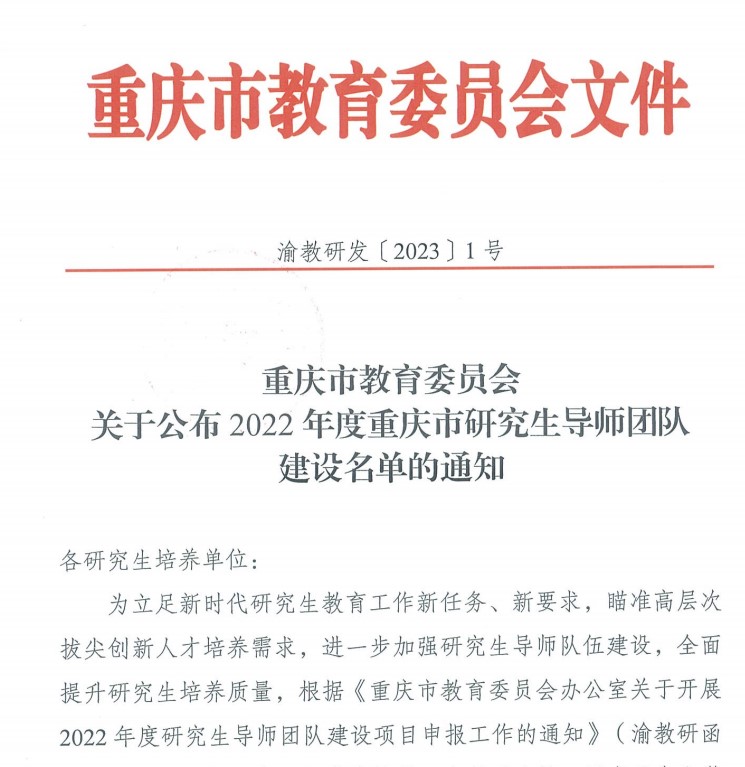 发布时间: 2023-02-16 15:29:58 已阅读:2023年1月30日,重庆市教育委员会发布《关于公布2022年度重庆市研究生导师团队建设名单的通知》,“逻辑、语言与认知”导师团队被评为2022年度重庆市研究生导师团队。