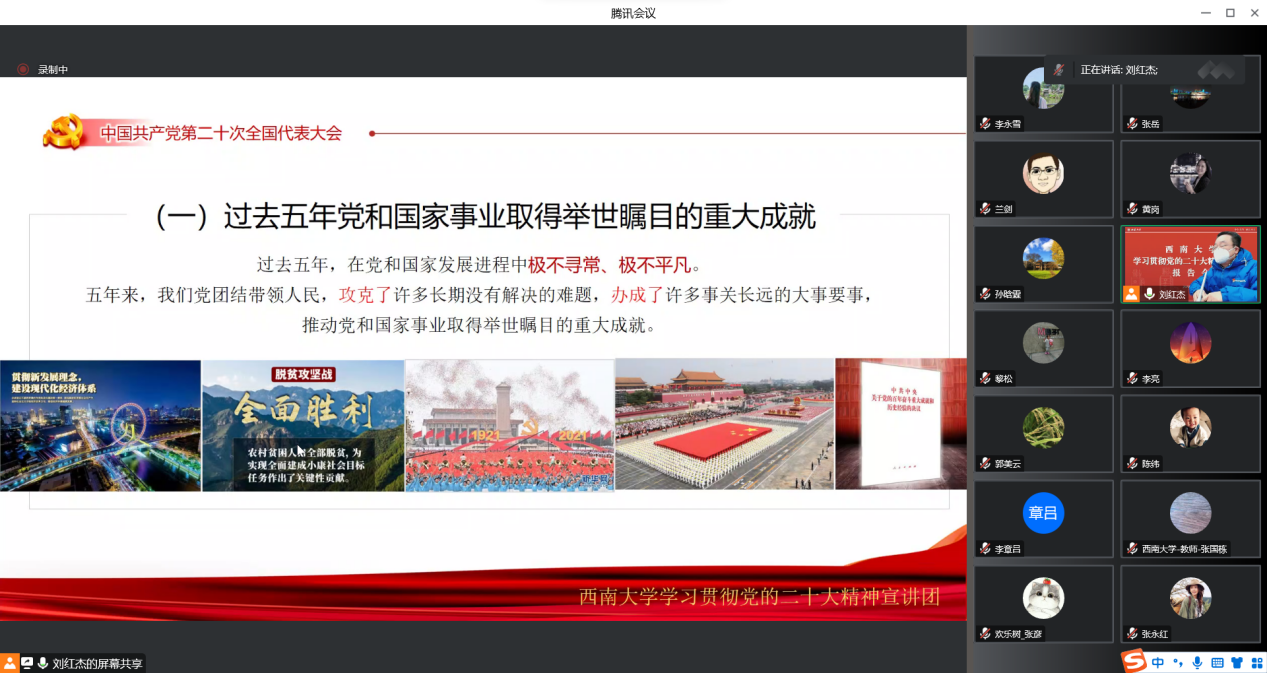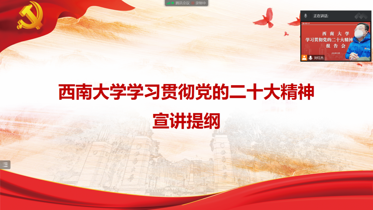 发布时间: 2022-12-27 16:39:26 已阅读:为深入学习贯彻党的二十大精神,根据学校党委统一安排,12月27日上午,伟德国际1946源于英国党委学习贯彻党的二十大精神宣讲团成员、学院党委书记吴江为全体教职工作党的二十大精神宣讲,宣讲会以线上线下相结合的方式举行,全体教职工参加报告会。