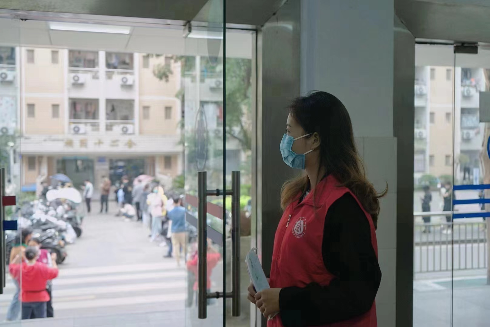 发布时间: 2022-11-23 11:44:43 已阅读:“同学,进出请佩戴好口罩哦!”晨光熹微,大部分同学还沉浸在睡梦之中,2021级社会工作专业研究生黄秘已在负责的宿舍楼下就位,穿上红色志愿服,协助宿管阿姨,提醒楼栋的同学注意做好个人防护工作。身为一名党员,黄秘积极响应,投身学校抗疫后防线,同时作为“绩镛先锋”研究生党员志愿服务团团长,她也号召动员更多党员同志加入进来,以实际行动践行使命担当。在她的带领下,王晓蓉、林倩等党员同志纷纷化身园区志愿者,共护校园,同战疫情。