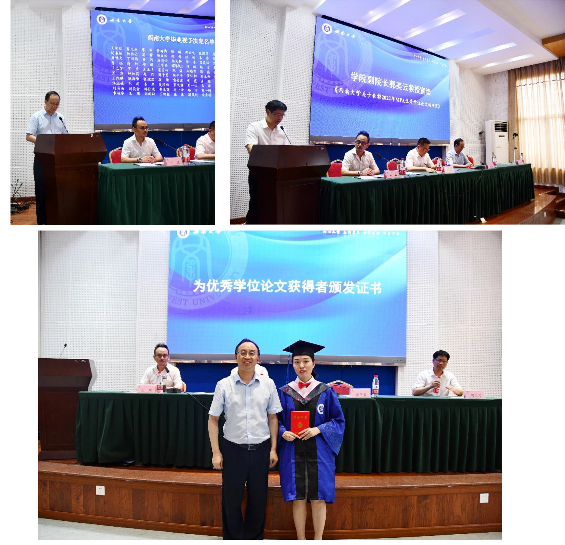 据悉,今年毕业的MPA学生中,大部分都是在公共部门从事基层一线工作。他们在抗疫、扶贫工作中冲锋在前,又始终保持学习、坚持完成学业,向学校和社会交出了一份份满意的答卷,充分展示了西大人坚持奋斗的精神底色。
