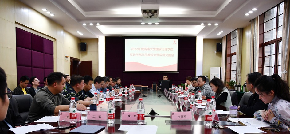 发布时间: 2022-03-14 21:43:00 已阅读:3月10日下午,学院2022年度军转干部培训学员座谈会暨导师见面会在绩镛楼3201会议室举行,学院班子成员、指导教师以及全体军转干部参加了此次座谈会。