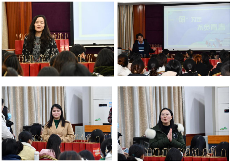 随后,同学们观看了学院精心制作的考研加油视频,考研上岸的2017级学长学姐们通过视频分享了自身的考场经历,希望2018级学弟学妹们能在备考的最后阶段调整状态、自信迎考,祝愿学弟学妹们一战成“硕”!