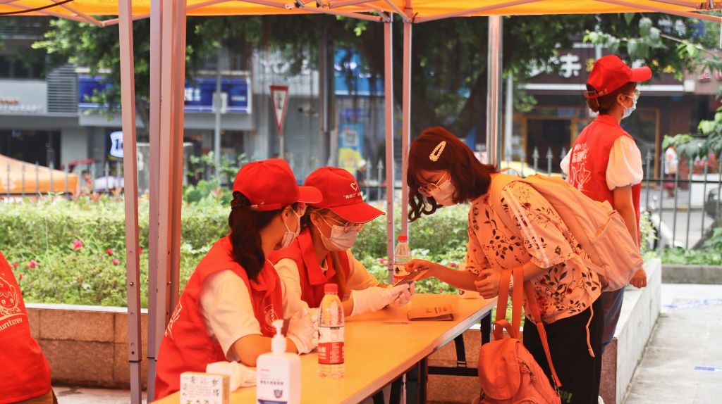 在经历48小时惊心动魄战时状态的“绩镛先锋”党员志愿者们,在学院党委的统一部署下,全力以赴投入迎新服务和疫情防控工作,全副武装,精神饱满,热情引导,谨慎检测,严格核验,分发物资,搬运行李,往来穿梭,全力保障新生入学报到安全有序、顺利进行,成为校园里一道亮丽的青春风景线。