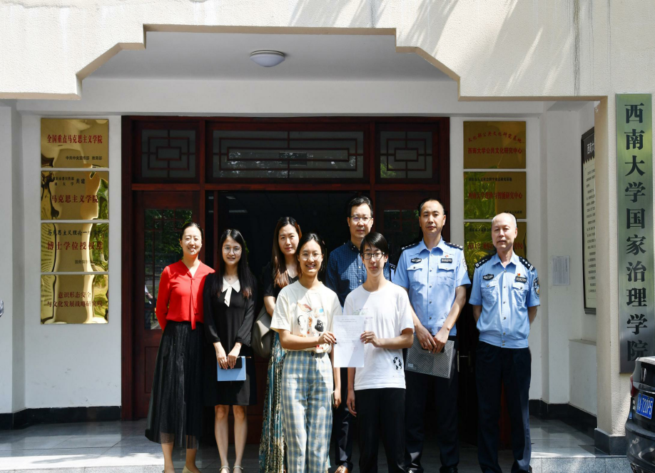 叶警官一行对为张经雨、董泽泽协助公安机关救助醉酒溺水女生的突出表现点赞。信中提到,2021年5月16 日 19 时许,北碚水上派出所、朝阳派出所民警在碚东大桥下游嘉陵江边对醉酒溺水的两未成年女生进行救助,我院社会工作系张经雨、董泽泽两同学主动积极参与江边救助,分别对两未成年女生开展疏导劝解工作。随后,两同学主动跟随民警到公安机关,对醉酒溺水女生进行安慰宽辅。21时许,张经雨同学和民警一道将其一未成年女生送回家中,受到家属的称赞。董泽泽同学在派出所积极配合民警将另一未成年女生送到家长开的车上,受到家属的感谢。叶警官感叹道,他从警32年来这是第一次看到非警察同学全程参与耐心帮助解决问题,他们通过同感关注、陪伴支持、情绪疏导等专业方法,与民警紧密配合,尤其在两位溺水者情绪冲动、燥怒不安时,发挥了很好的作用。此次救助劝解行动中,两位同学全程守护、细致耐心、勇敢善良,用自己的努力诠释了新时代青年学子的责任担当。