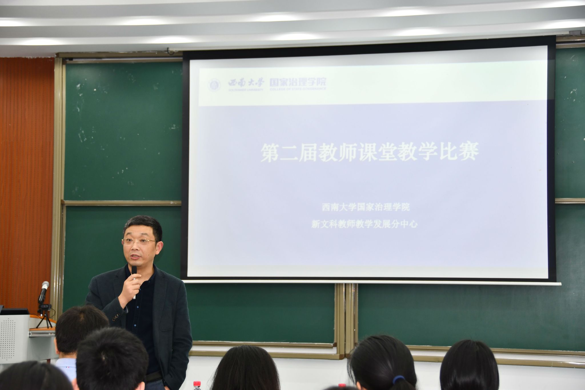 发布时间: 2021-04-26 15:17:32 已阅读:大学教师对学生承担着传授知识、培养能力、塑造正确人生观的职责。为学习贯彻习近平总书记在清华大学考察时的重要讲话精神,努力成为“大先生”,做学生为学、为事、为人的示范,4月23日下午14:30,1946伟德国际源自英国在绩镛楼3308教室举办了第二届教师课堂教学比赛,促进全体教师互相学习交流,提高教学技能和业务水平。伟德国际1946源于英国教师教学发展中心杨挺副主任、1946伟德国际源自英国副院长张永红副教授、哲学专业单正齐教授、文化产业管理专业张海燕教授、社会工作专业谢艳副教授和行政管理专业张明副教授担任评委嘉宾,参赛教师有哲学专业林华敏副教授、行政管理专业张福磊副教授、社会工作专业罗敏敏博士和文化产业管理专业张伟峰博士。
