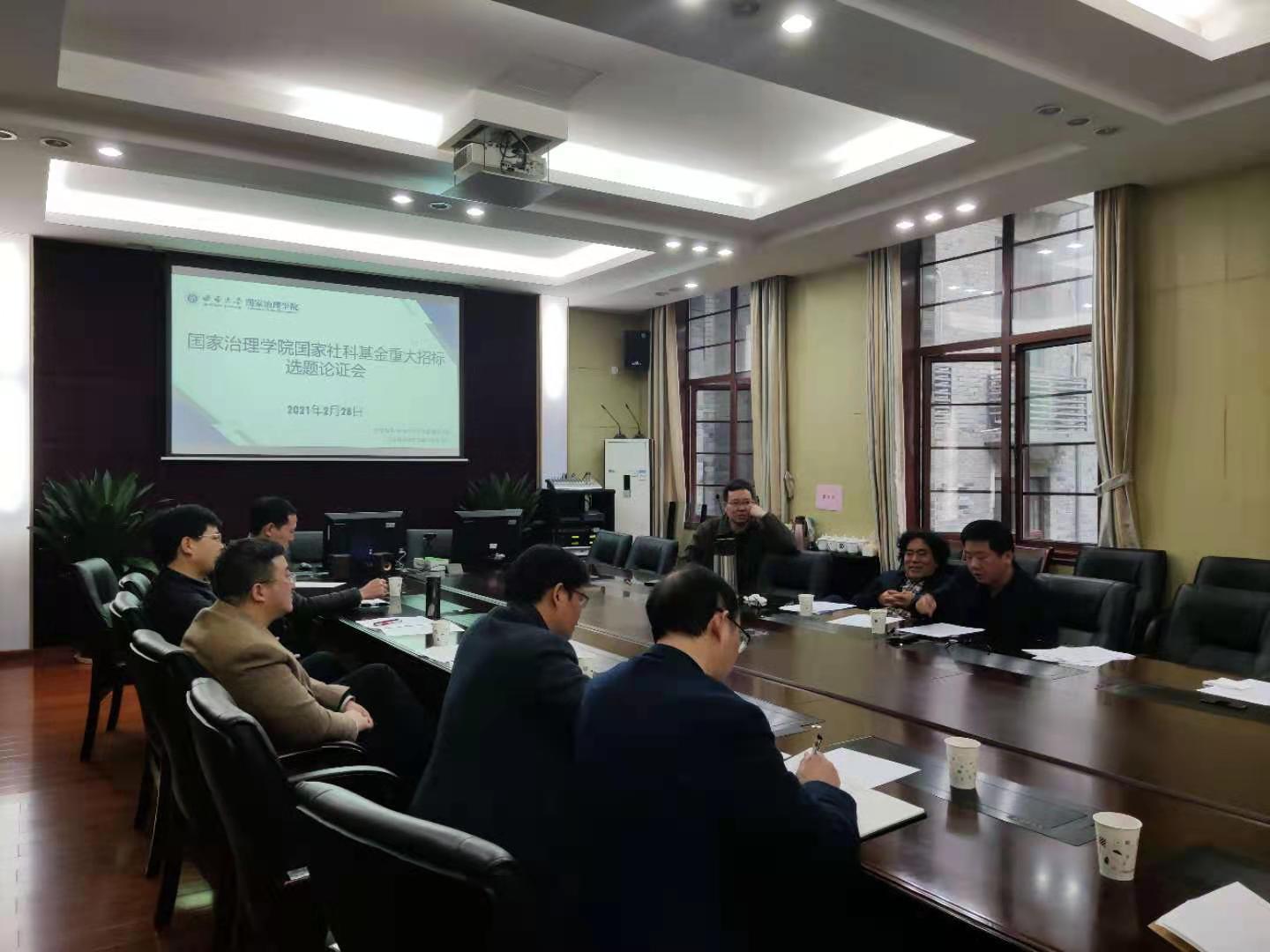 发布时间: 2021-03-03 14:57:05 已阅读:为做好学院2021年度国家社科基金重大项目招投标工作,广泛听取专家学者的意见和建议,学院于2月28日上午在绩镛楼3201会议室举办了2021年度国家社科基金重大项目选题论证会。会议特邀邹芙都、王志章两位教授,对哲学系、公共管理系和社会学和社会工作系共计四项重大选题进行指导。会议由1946伟德国际源自英国何健副院长主持。