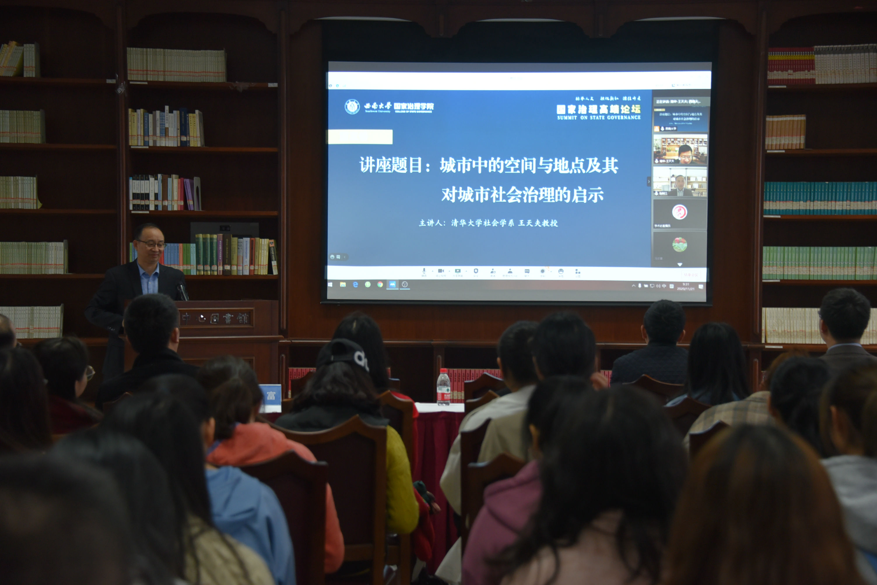 发布时间: 2020-11-24 14:50:04 已阅读:2020年11月21日,清华大学社会学系王天夫教授莅临我院“国家治理论坛”开展《城市中的空间与地点及其对城市社会治理的启示》讲座。河海大学环境与社会研究中心主任陈阿江教授受邀评议。1946伟德国际源自英国院长潘孝富教授主持讲座,社会学系全体师生线下参加。