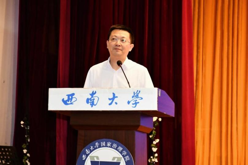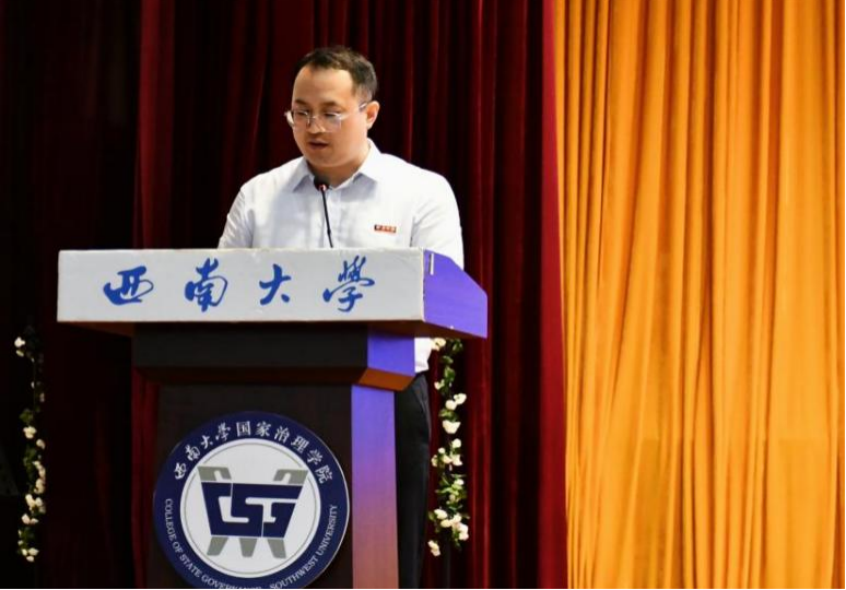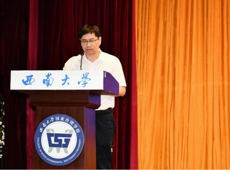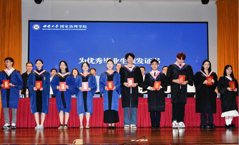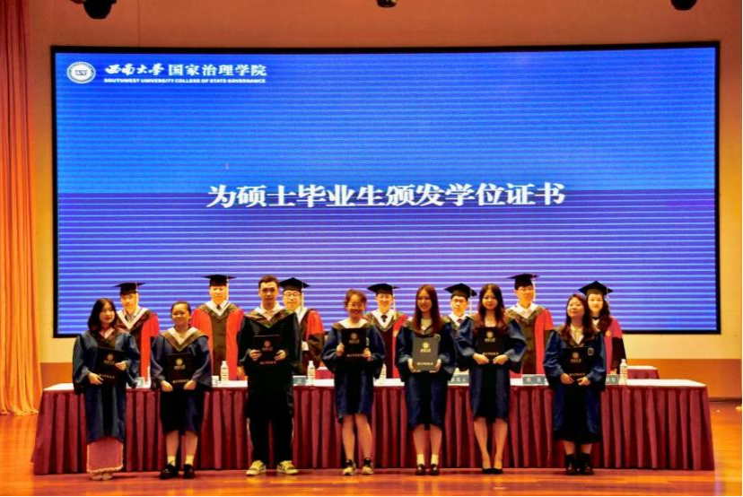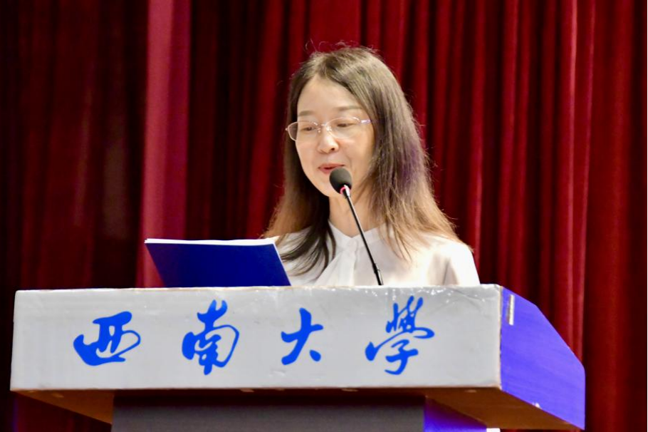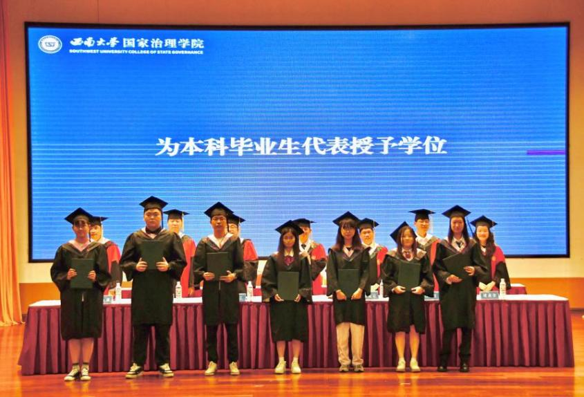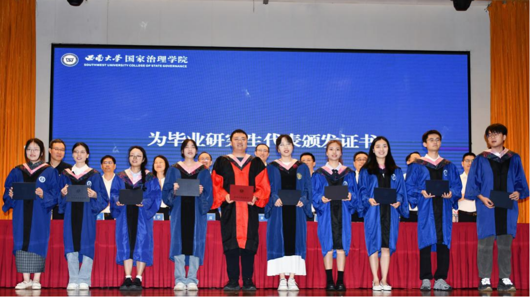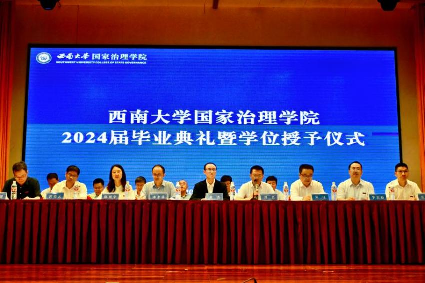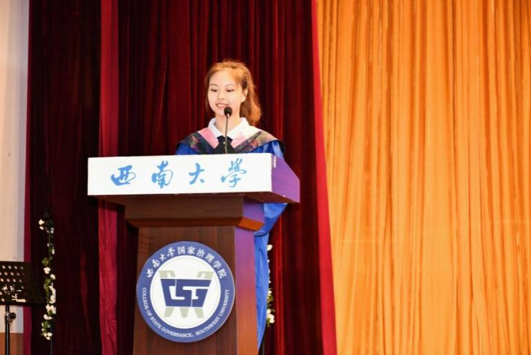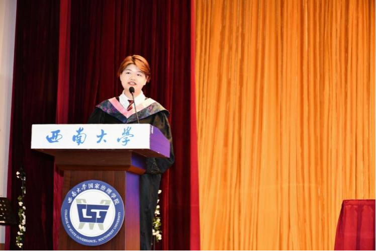 毕业研究生代表黄秘回顾了七年西大记忆,分享了初心沉淀与成长淬炼两个故事。希望大家不忘来时路,方知向何生,不罔肩头担,永远跟党走。本科毕业生代表李泳辰在发言中回忆到在四年前成为1946伟德国际源自英国第一届学生,在过去四年与时代同行、与学院共进、与青春共舞,祝愿每一位毕业生这不平凡的路上不辍不休。教师代表何健寄语毕业生们在未来始终将校训“含弘光大,继往开来”,院训“善治明理,弘毅修远”内化于心,外化于行,不仅记得在西大的拼搏,还须记得在西大收获的各种美好。祝愿毕业生们未来一路凯歌,归来仍是少年!