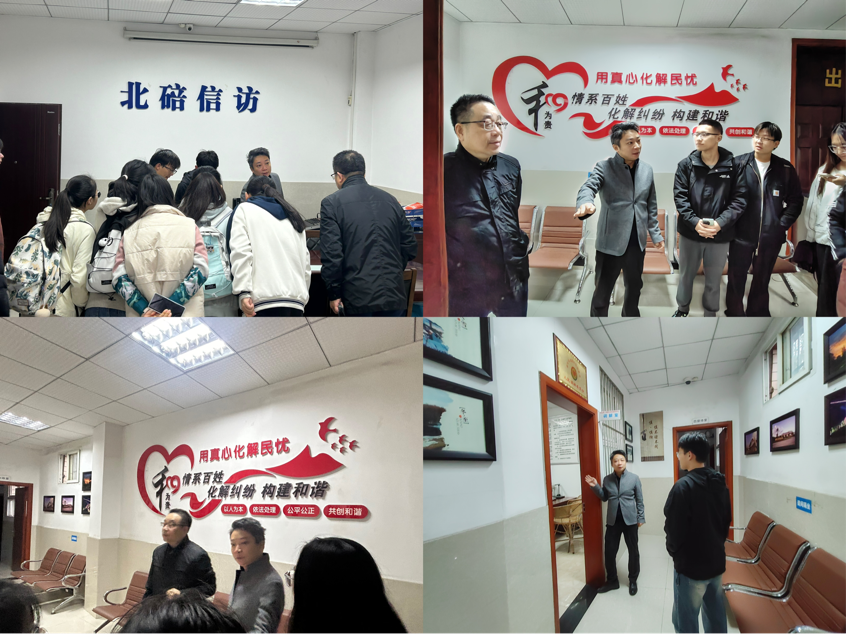 随后,黄祺琨科长为同学们介绍信访上访流程,带领大家参观警务室、接待室、调解室等工作流程地点,深入阐述信访部门与其他部门的协同模式,让同学们对信访工作有了整体认识。