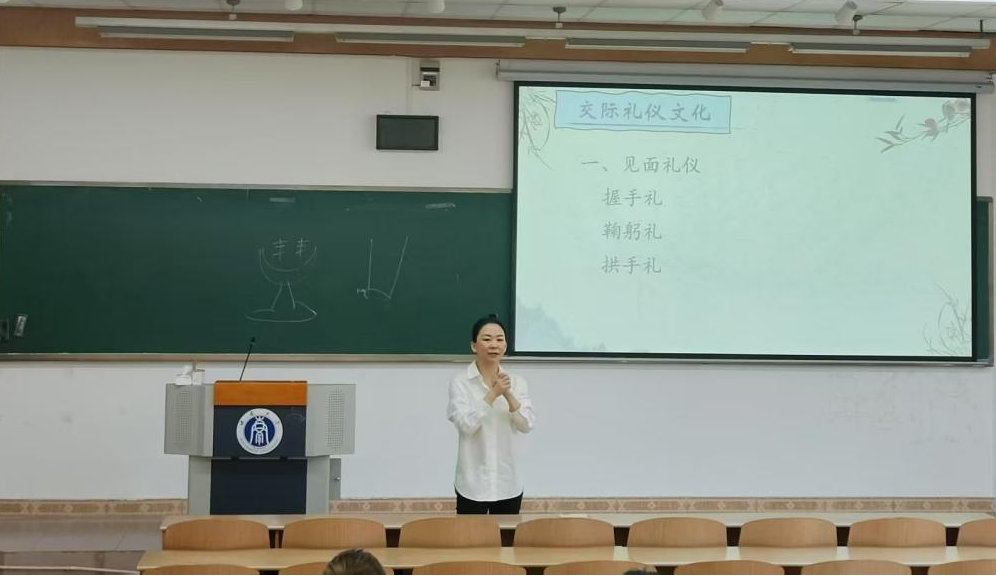黄建华老师以生动的案例引入,提出“礼仪是历史、文化与文明,也是尊重、自重与细节”的观点。接着,黄老师从历史演变与场景应用的维度,为同学们深度讲解了社交形象塑造和交际礼仪文化两方面内容。她运用溯源考据、情景模拟与互动实践相结合的方式,全面呈现出现代社交礼仪规范的深层逻辑与实践范式。
