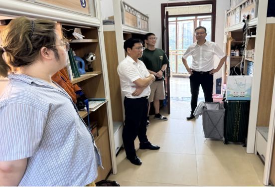 走访过程中,学院领导与新生们面对面交流,详细询问新生来校后的生活适应、饮食住宿及防暑降温等情况,实地考察宿舍基础设施、安全管理及环境卫生状况。结合人才培养要求,着重强调要加快角色转变,树立严谨务实的学习态度,做好个人新学期发展规划。同时叮嘱同学们认真学习宿舍管理规定,严守纪律底线,筑牢安全防线,携手守护财产安全与身心健康。要团结友爱寝室成员,在集体生活中相互包容、互助共进,共同营造良好寝室氛围。
