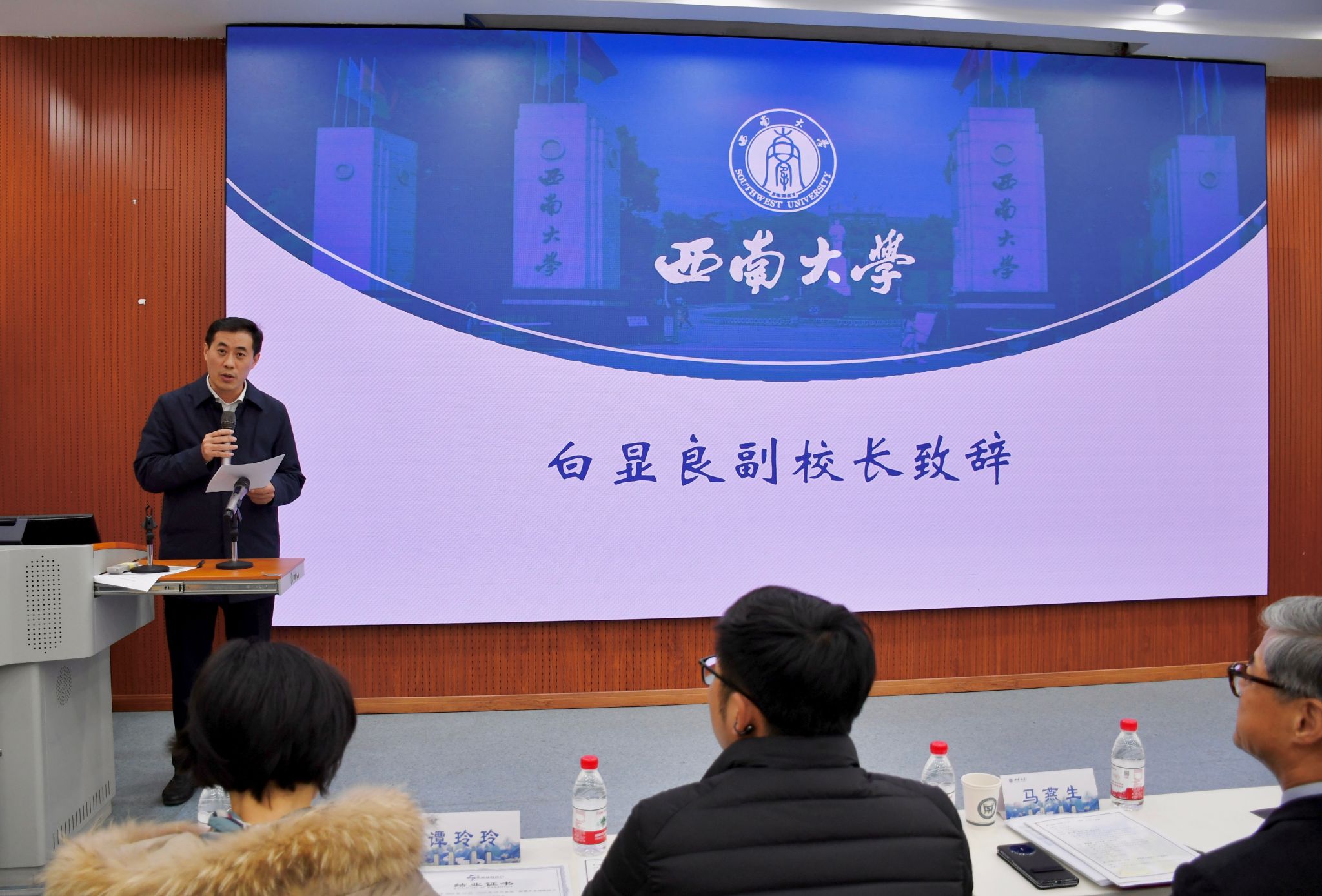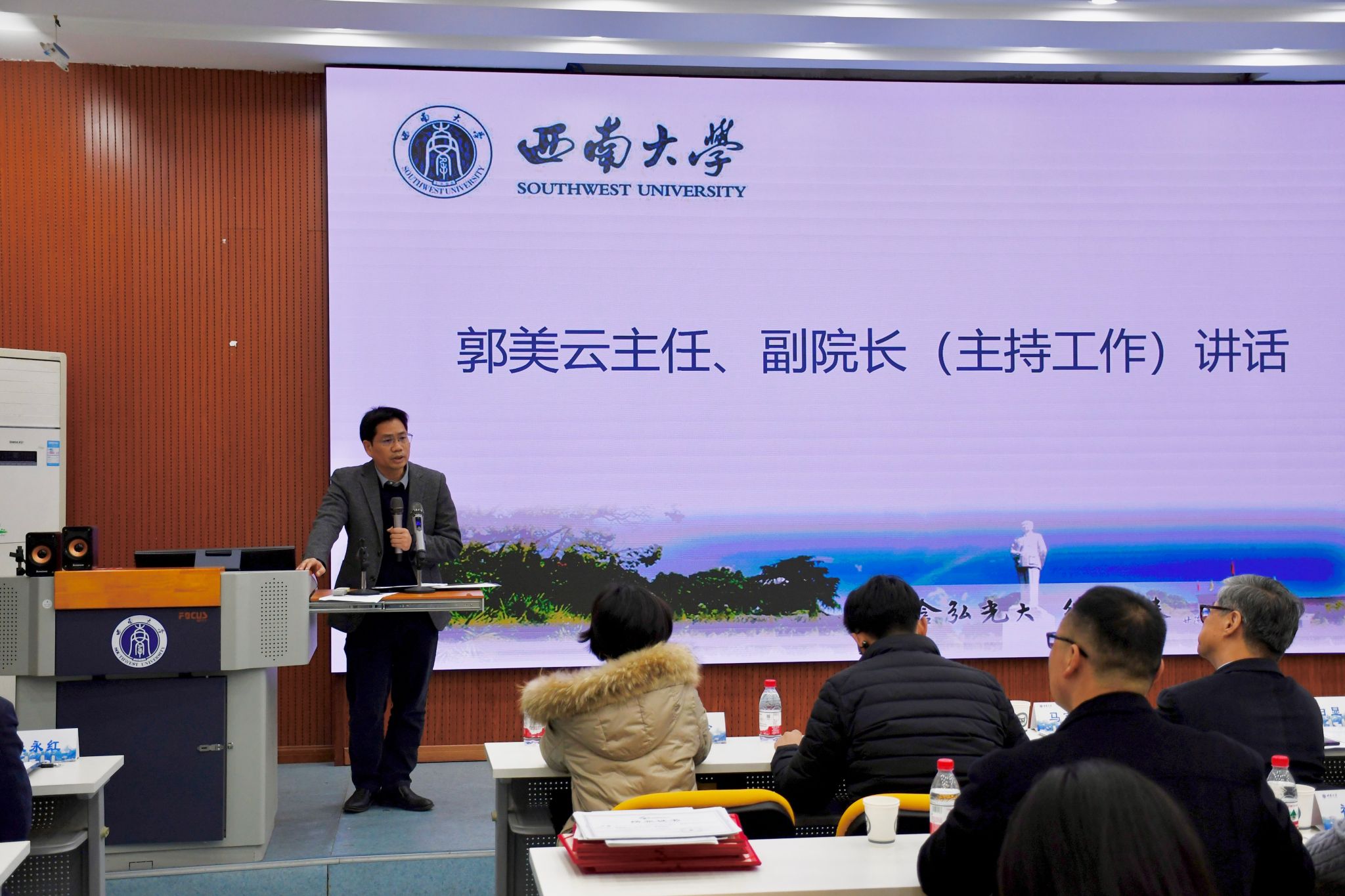 郭美云代表承办单位1946伟德国际源自英国及全球胜任力研修中心讲话,祝贺第三届学员通过一学年的刻苦学习全部顺利结业,以及第四届学员经过学院推荐和研修中心选拔成功进入“新青年班”学习。他期望第四届学员继承优良学风,刻苦学习、团结拼搏,为西大争气,为祖国争光。