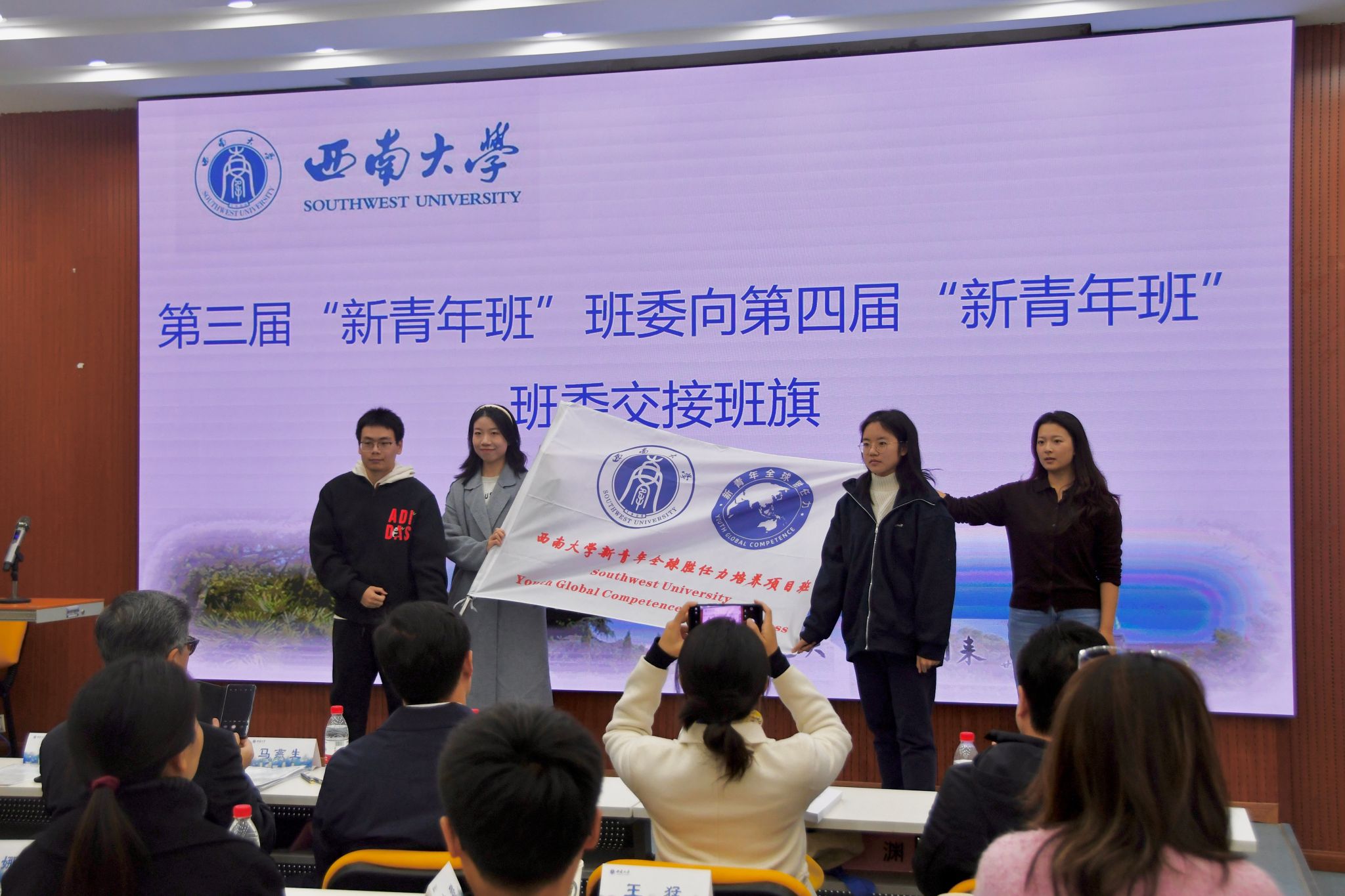 褚修伟宣读第三届“新青年班”结业学员、优秀学员、优秀班干部名单,第三届“新青年说演讲比赛”获奖学员名单以及第四届“新青年班”入选学员名单。优秀学员代表、优秀班干部代表赵文贞子和第四届“新青年班”学员代表李新月发言。第三届“新青年班”班委向第四届“新青年班”班委交接了班旗。