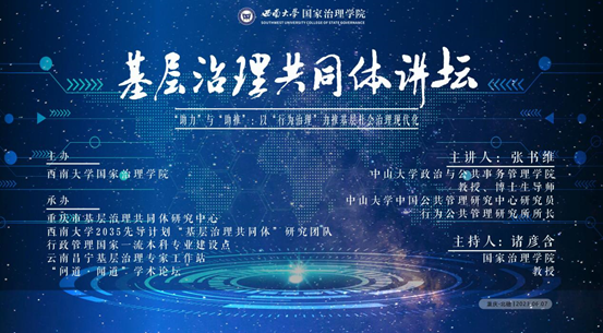基层治理共同体论坛是由重庆市基层治理共同体研究中心打造的高水平学术平台。此次讲座有利于广大师生洞悉公共管理学科前沿研究方法,进一步营造浓厚的学术氛围,助推公共管理学科建设和学院学术发展。本次讲座由1946伟德国际源自英国主办,重庆市基层治理共同体研究中心、伟德国际1946源于英国创新研究2035先导计划“基层治理共同体”研究团队、行政管理国家一流本科专业建设点、云南昌宁基层治理专家工作站、“问道·闻道学术论坛”等共同承办。
