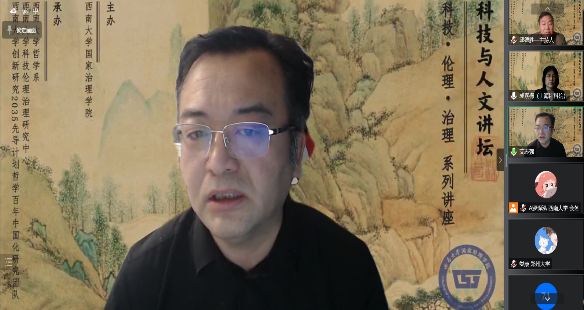 进入评议环节,艾志强教授表示,此次讲座结构清晰,观点新颖,特别具有前沿性,对于我们了解人工智能技术前沿的伦理风险,及时开展前瞻性研究极具启发意义,与会师生受益匪浅。此外,他鼓励参与讲座的同学们关注智能伦理、关注伦理教育与马克思主义科技伦理等前言议题。