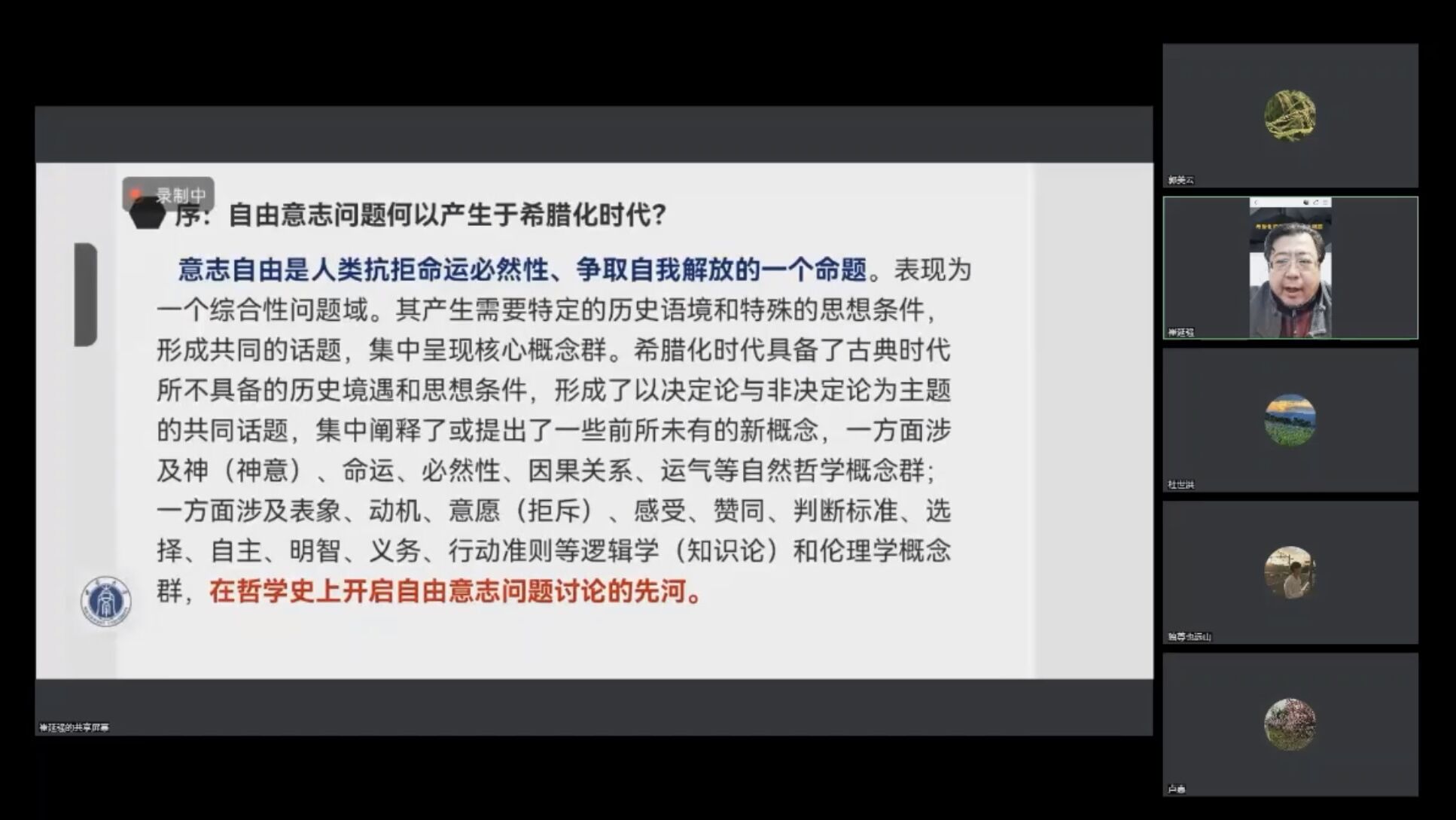 发布时间: 2022-11-24 21:19:34 已阅读:2022年11月18日晚,由1946伟德国际源自英国主办,伟德国际1946源于英国哲学系、伟德国际1946源于英国创新研究2035先导计划哲学百年中国化研究团队承办的“问道·闻道”学术论坛之“自愿、自由意志与道德生活”系列讲座第三讲于线上顺利举行。本期讲座主题为“希腊化时代的意志自由问题”,由伟德国际1946源于英国副校长崔延强教授主讲,1946伟德国际源自英国副院长郭美云教授主持,国际关系学院王文华教授担任评论人。