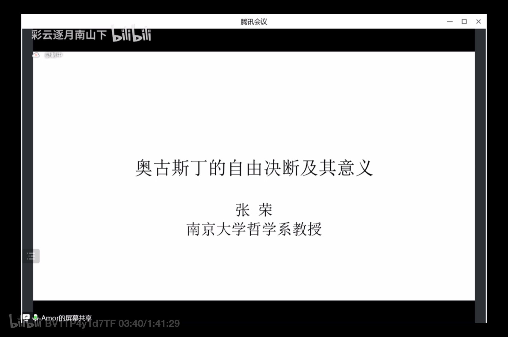 发布时间: 2022-12-11 11:35:19 已阅读:11月25日晚,由1946伟德国际源自英国主办,伟德国际1946源于英国哲学系、伟德国际1946源于英国创新研究2035先导计划哲学百年中国化研究团队承办的“自愿、自由意志与道德生活”系列讲座第四场于线上顺利举行。本次讲座主题为“奥古斯丁的自由决断及其意义”,由南京大学哲学系张荣教授主讲,伟德国际1946源于英国哲学系刘阿斯博士主持,湖南大学岳麓书院花威教授担任评议人。