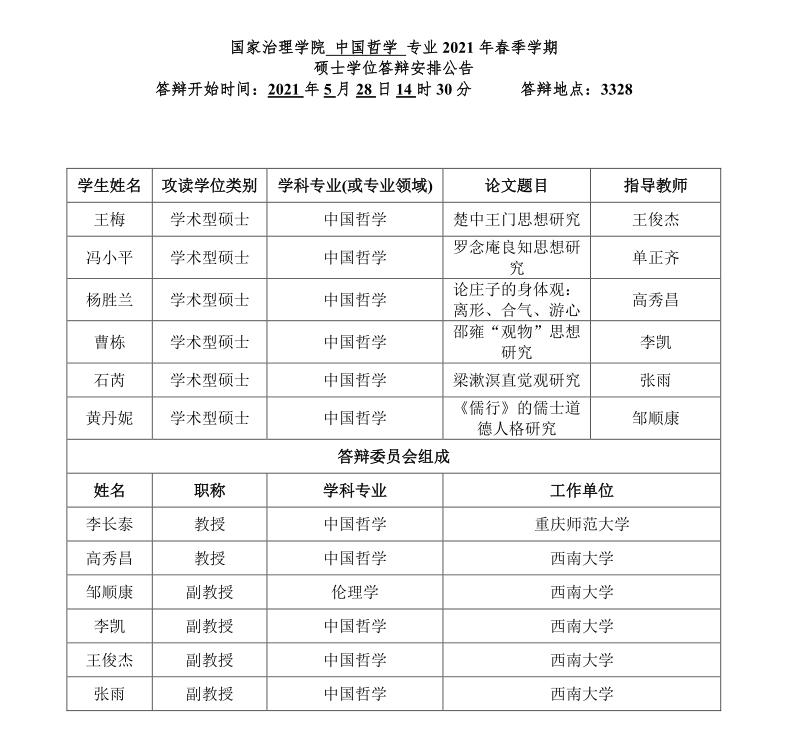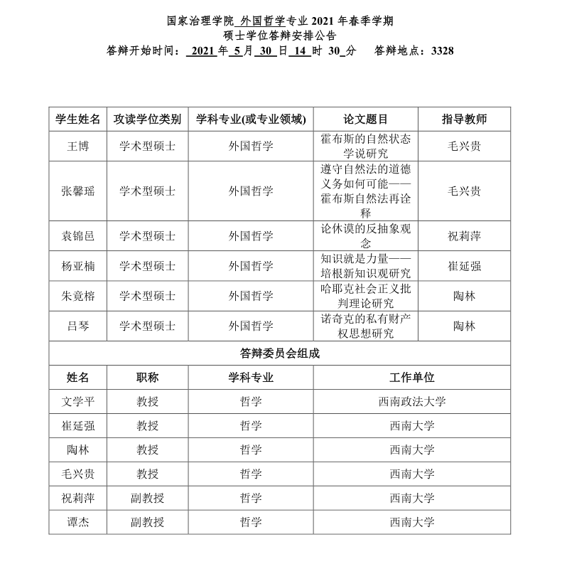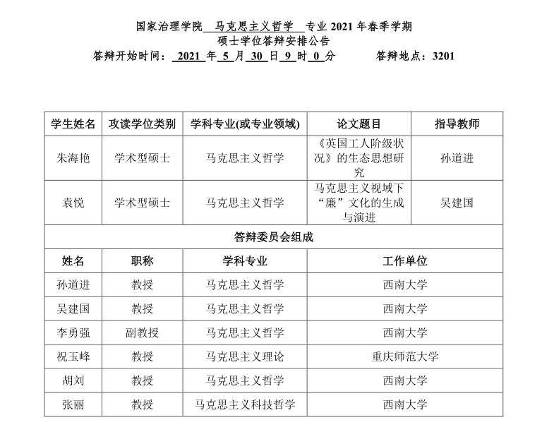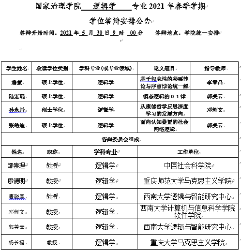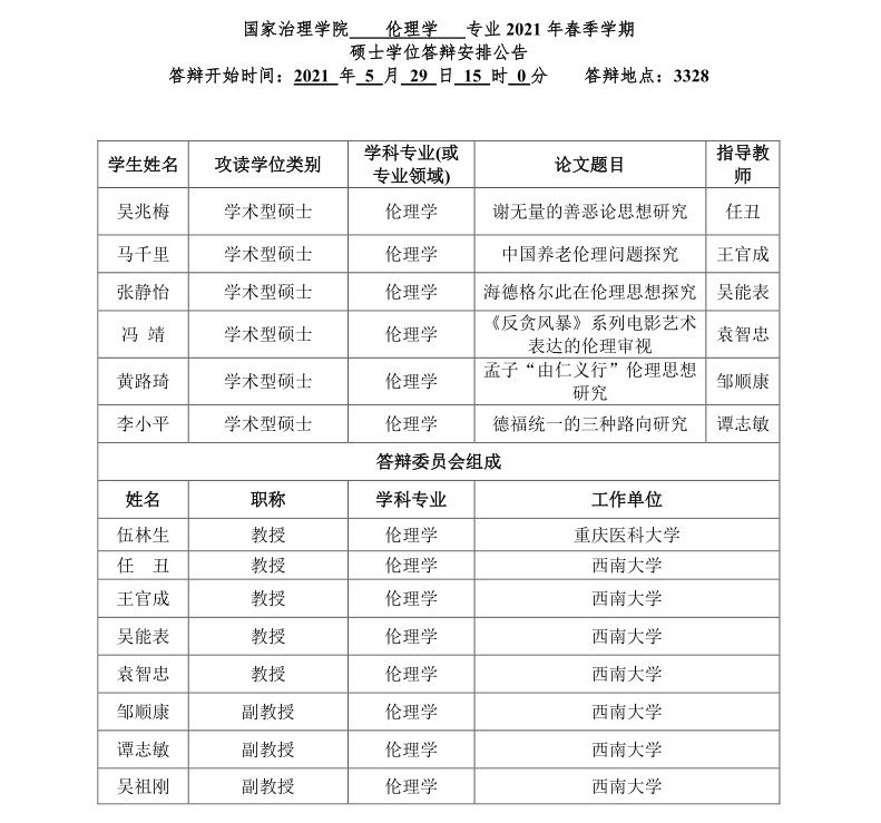 1946伟德国际源自英国 2021年春季学期全日制研究生学位答辩安排公告
