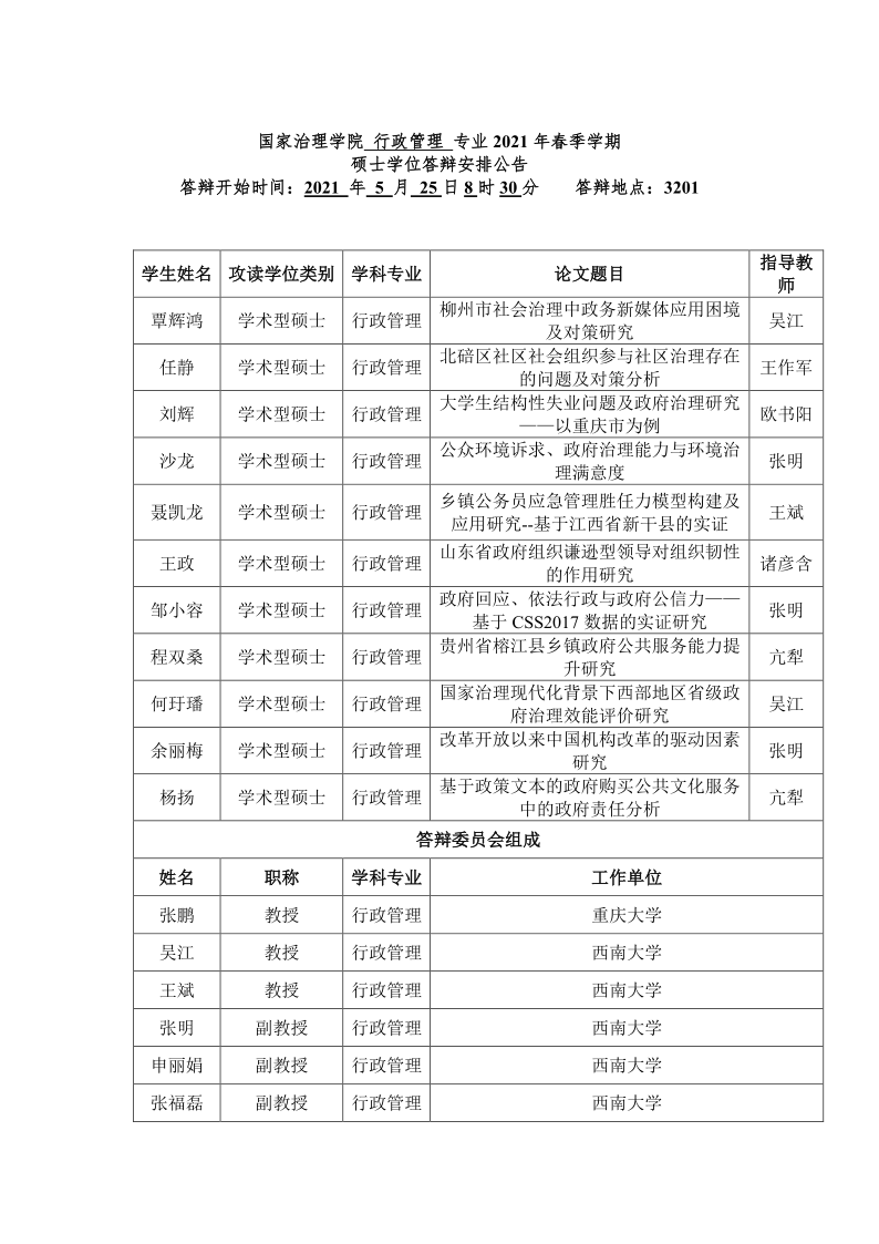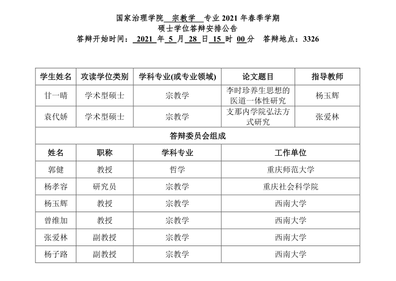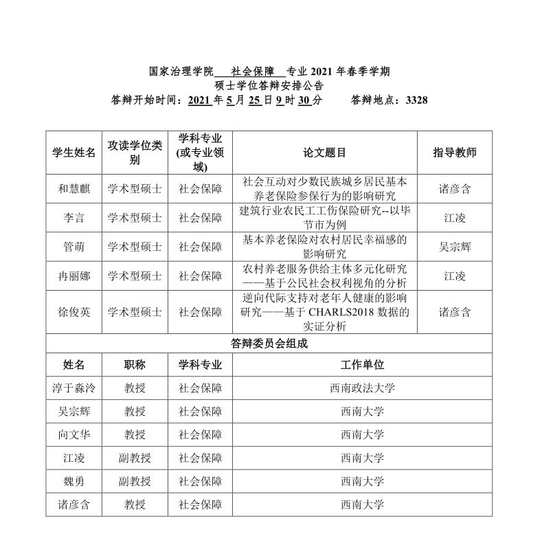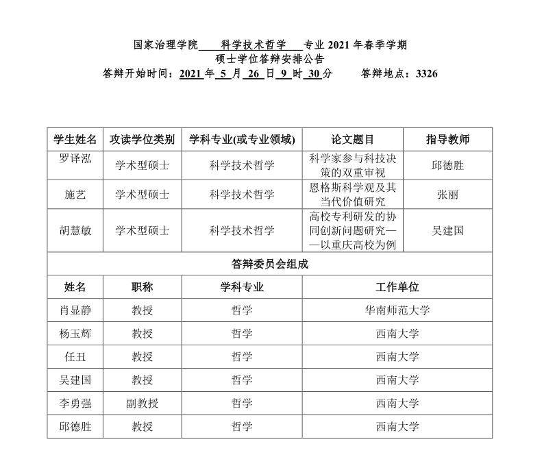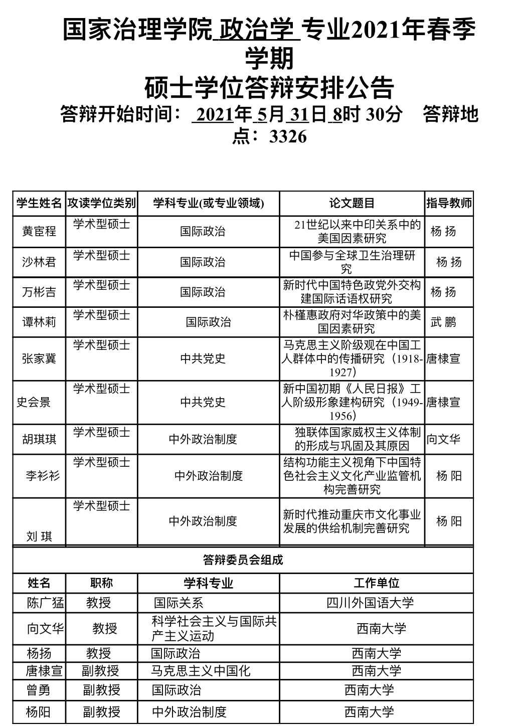 1946伟德国际源自英国 2021年春季学期全日制研究生学位答辩安排公告