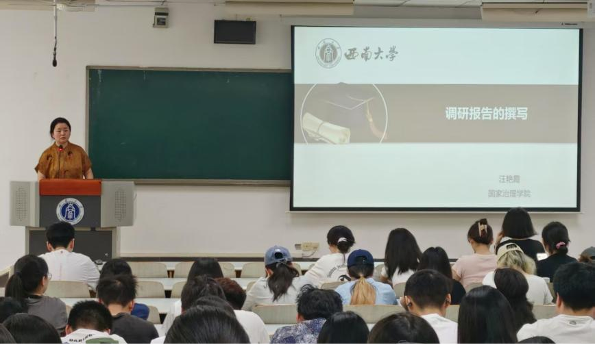 发布时间: 2025-04-28 11:01:05 已阅读:为培养学生写作能力和实践意识,助力学生更好完成专业实习任务,4月21日上午9:30,学院本科2022级于10教301教室开展了主题为“调研报告撰写”的实习前实务培训。本次培训邀请汪艳霞老师作为主讲人,2022级全体本科生参加培训。