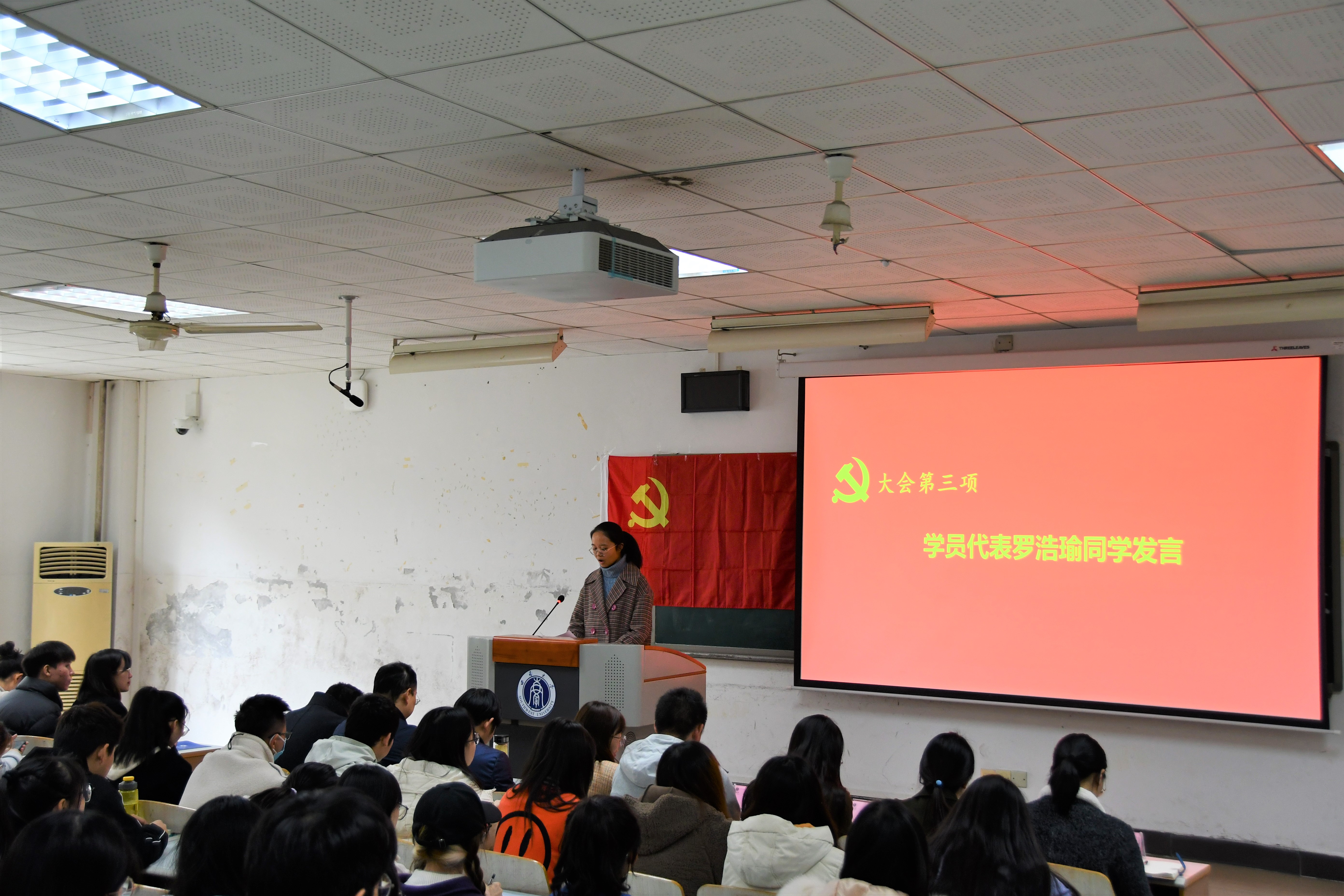 典礼在庄严的国歌声中拉开帷幕。首先,由2018级李泓桥同学代表学生党员发言,他讲述了自己的大学追梦历程、支教经历,鼓励学员们在学习和生活中矢志奋斗,在磨砺中蜕变成更优秀的自己。学员代表罗浩瑜在发言中表示,将秉承立大志、明大德、成大才、担大任的坚定信念,把学习成果转化为奋进新征程、建功新时代的实际行动。