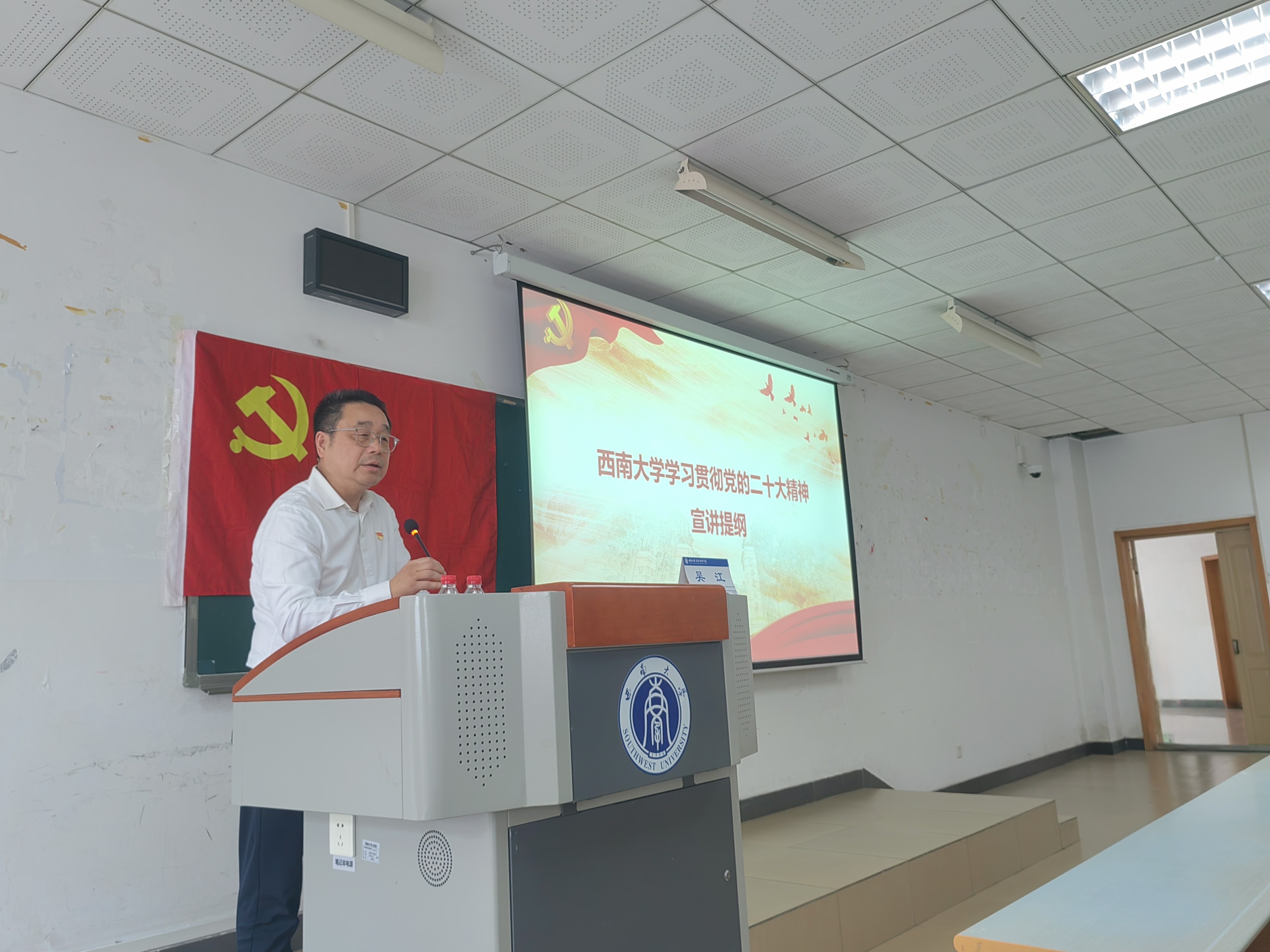 开班典礼在庄重的国际歌中结束。开班典礼结束后,吴江书记以“学习贯彻党的二十大精神”为主题,为培训班学员讲授了第一堂党课。