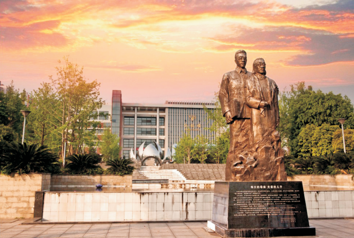 王朴烈士与其母亲金永华的塑像(位于渝北中学)