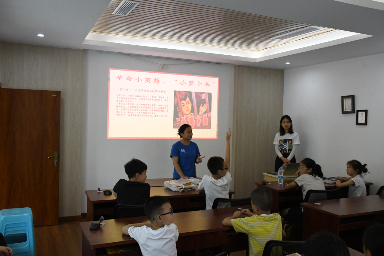 接下来,实践团宣讲员万敏讲述了最小的革命烈士小萝卜头的故事,旨在让小朋友们学习不畏困难,能吃苦,肯奋斗的革命精神。小朋友深受感动,表示“我们生活的年代远比小萝卜头的年代好,所以我们更应该好好学习,努力建设祖国。”