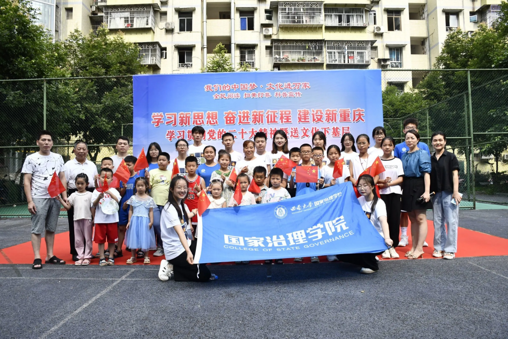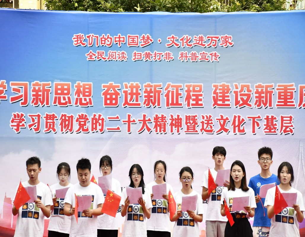 发布时间: 2023-07-10 23:26:23 已阅读:为深入学习宣传党的二十大精神,满足广大群众的精神文化需求,促进精神生活共同富裕,7月6日上午,1946伟德国际源自英国实践团和万东镇党委联合举办了“学习新思想、奋进新征程、建设新重庆”为主题的学习贯彻党的二十大精神暨送文化下基层文艺汇演。