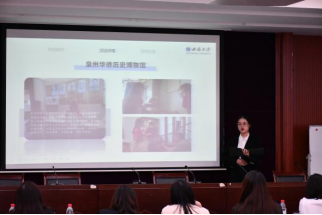 学院暑期“三下乡”实践团、重庆石柱黄连小分队、“初心如磐”实践队、福建泉州侨乡小分队、重庆丰都公宣小分队、贵州丹寨小分队等7只队伍的代表从实践的前期准备、活动主题、实践过程、实践成果等方面进行了展示,他们结合自身经历,立足实践,分享了在社会实践活动中的收获和成长,引导同学们发挥专业特长,将所学知识运用在实践当中,练就过硬本领,担当时代重任。