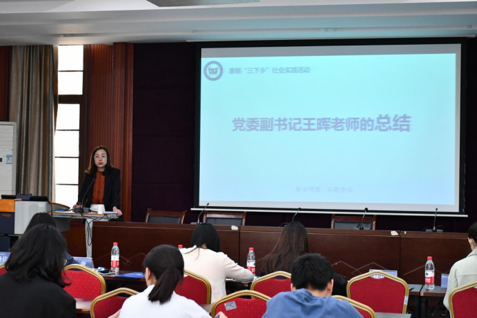 随后,学院党委副书记王晖对本次分享会进行总结。王晖老师充分肯定了此次三下乡社会实践活动的成果,认为此次分享会展示出了同学们对于乡村振兴、社会治理、文化传承创新等方面的关注,展现了国治青年的作为和担当。同时希望各位学子继续秉持学院“修真才实学,养家国情怀”的精神,继续用脚步丈量大地,真正把论文写在祖国大地上。