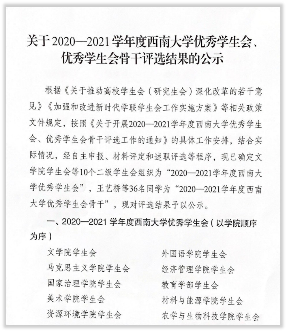 发布时间: 2021-06-17 16:30:17 已阅读:日前,2020-2021学年度伟德国际1946源于英国优秀学生会、优秀学生会骨干评选结果公示,我院学生会荣获“2020-2021学年度伟德国际1946源于英国优秀学生会”称号。