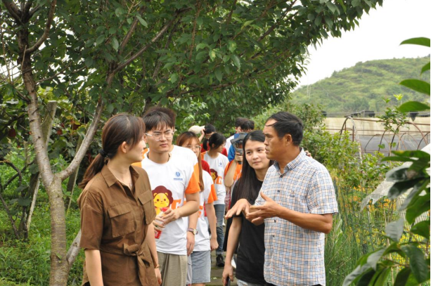 12日上午,亮腾猕猴桃种植基地负责人曹明亮带领社会实践团全体成员前往果园参观学习。他向同学们介绍了果园的基本概况,包括果园的面积、产量、销售渠道等,着重强调了猕猴桃的套袋技术及其作用,为同学们描绘了一幅“农业强、农村美、农民乐”的秀美画卷。