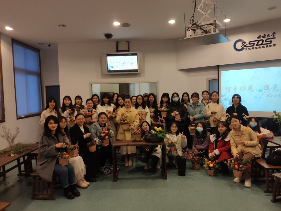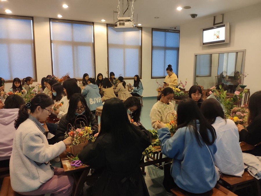 至此,本次女生节插花美学沙龙活动圆满结束。插花艺术历史悠久,千年风雅韵味无穷。本次活动的成功开展体现了我院整合校内外资源,发挥已有的生活艺术教育传统优势,积极探索构建以审美和人文素养培养为核心、以中华优秀传统文化传承发展和艺术经典教育为主要内容的新文科美育课堂。相信我院女生通过学习插花文化,可得一室芬芳、品一心欢愉,将在一花一叶的修炼中遇见更好的自己。