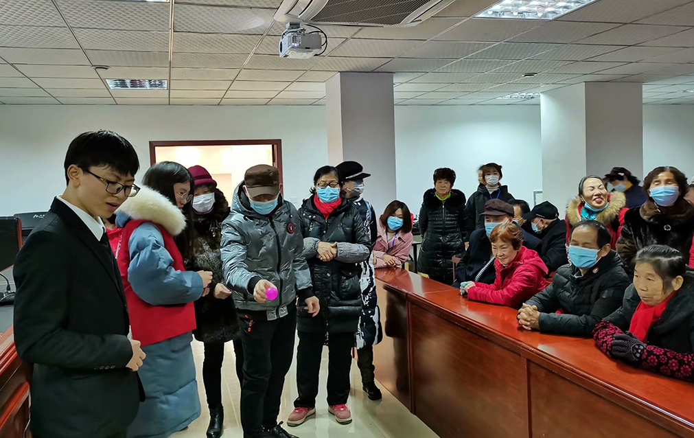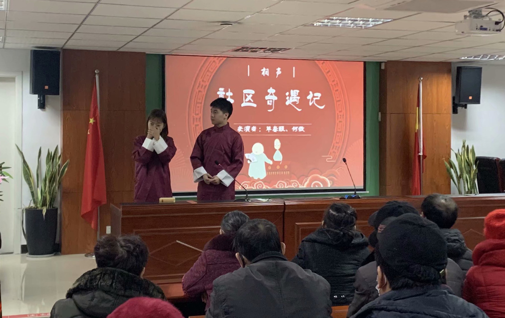 接下来,单春醒和何傲两位宣讲员身着绛红色长衫大褂,为我们带来了一场妙趣横生却又不乏深度的相声表演——《社区奇遇记》。一个接一个的包袱让观众们应接不暇,喜笑颜开。笑料之余,去社区看望爷爷奶奶的生动剧情也为我们展现了街头巷井里的人间烟火,以及这背后体现的国家对百姓民生的无微不至的关怀。随后,游戏环节——“百发百中”开始了。这一有趣的游戏,让现场的观众们在积极参与游戏活动的同时,也从中感受到了道路自信、理论自信、制度自信、文化自信的强大力量。