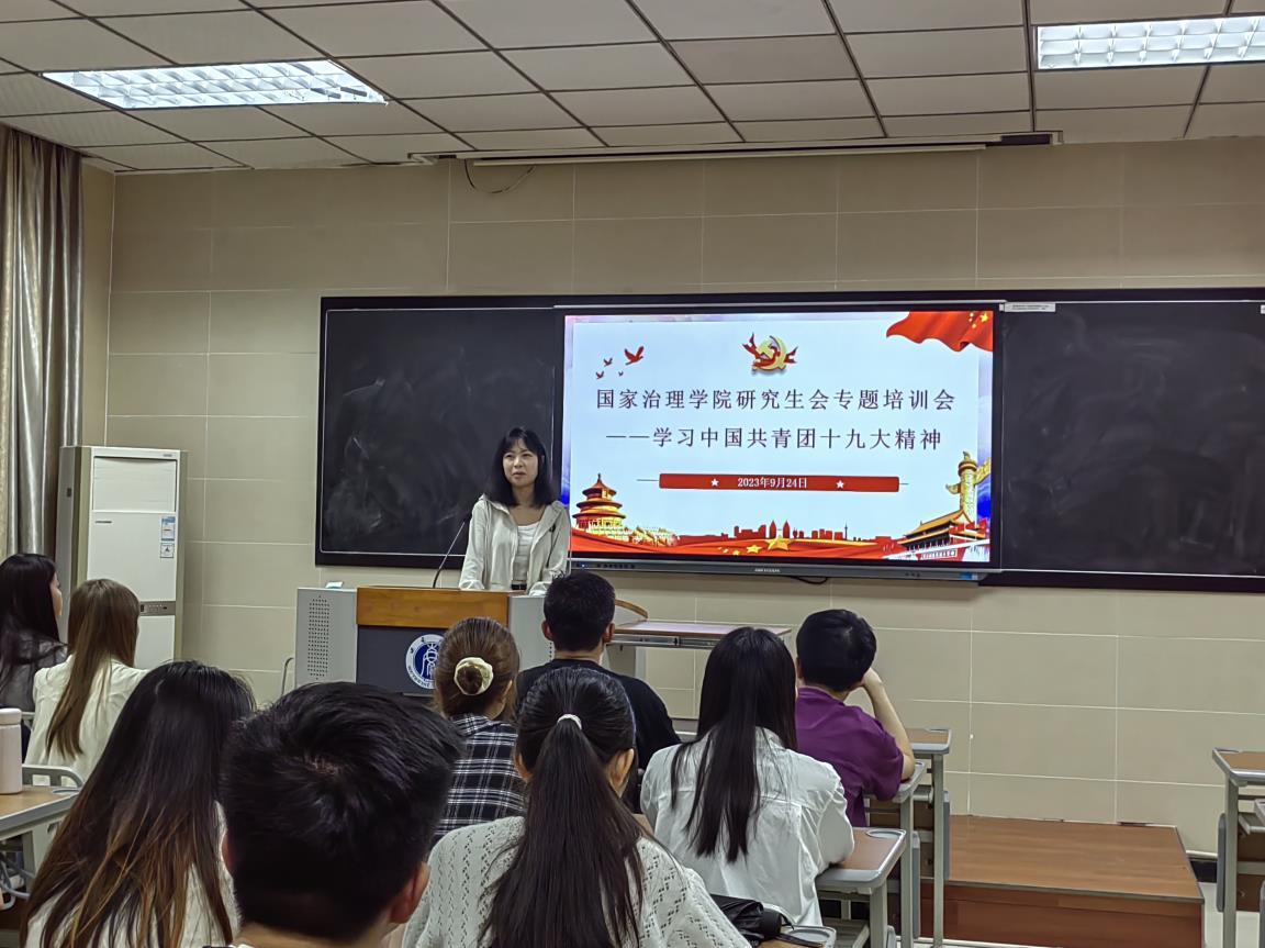 随后,为认真学习贯彻习近平新时代中国特色社会主义思想,不断加强和改进新时代研究生会工作,组织部部长彭霞带领全体成员开展研究生会专题培训会,学习中国共青团十九大精神。会议中,全体成员通过阅读材料、观看视频、交流讨论等形式,对中国共青团第十九次全国代表大会的主要内容、主要成就和主要任务有了更加全面、深刻的认识。