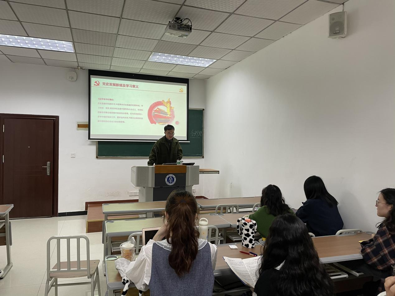 研究生2020级公管系团支部在3101教室组织开展主题团日活动,公管系团支部的王淼霖同学介绍说我们今天学习党史不是为了学习而学习,重点在与时俱进,在改革创新党的建设。一部中共党史是党的几代领导集体和各个时期党员干部改革创新党的建设的智慧结晶,执行党的路线方针政策的鸿篇巨著,值得学习的东西很多,作为新一代的学子们,我们是应该要了解历史,牢记历史。从而改善自我,加强共青团的精神支持。