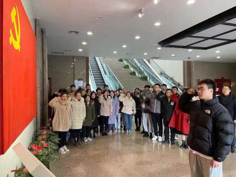 在 “千秋红岩”展览回廊,新入党的同志们认真阅览中共中央南方局、八路军驻重庆办事处、《新华日报》和中共代表团以及红岩人物、事件等相关照片与珍贵文物,仔细聆听“共赴国难——抗日民族统一战线形成”、“雾都明灯——中共中央南方局驻足红岩”、“抗战号角——新华方面军”等一段段光荣的、可歌可泣的革命历史和故事,特别是中国共产党人视死如归的革命精神和无私奉献的高尚情怀,感染和激发了在场的每一位新入党的同志。巍峨的歌乐山,不朽的红岩魂,穿越岁月的尘烟,千千万万的革命英雄抛头颅、洒热血,谱写出气壮山河的爱国篇章。新入党的同志们不禁感叹,什么是“红岩精神”?那是无数革命先辈用鲜血书写的慷慨赞歌,用生命践行的执着追求。“红岩上红梅开,千里冰霜脚下踩,三九严寒何所惧,一片丹心向阳开!”红岩赞歌不衰,红岩精神不朽,它是共产党人锲而不舍的政治智慧、同流不合污的政治品格、团结多数的宽广胸怀以及宁难不苟的英雄气概的集中表达,是爱国、团结、奋斗、奉献精神的集中完美诠释。面对革命先烈用炽热鲜血染红的党旗,同志们热血澎湃,庄严宣誓,誓将革命精神厚植于心、外化于行,接过革命事业的接力棒,扛起新时代赋予的责任与使命,奋力前行。