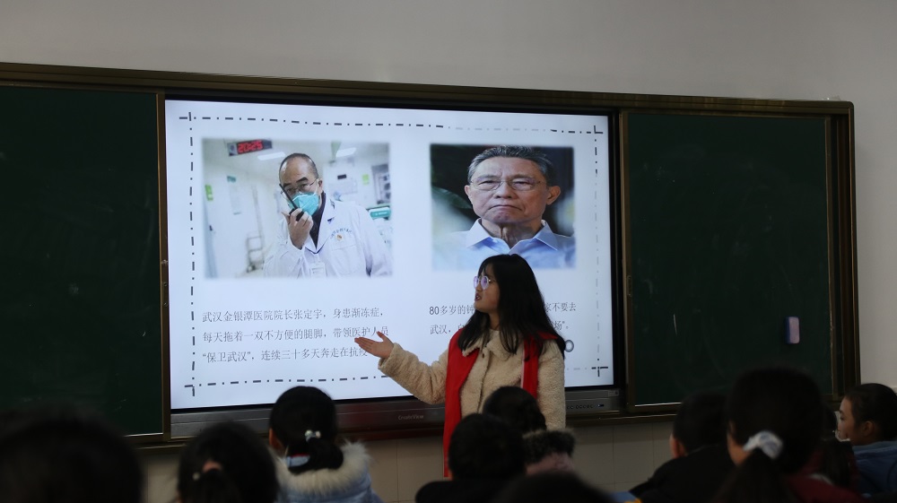 为了强化小朋友们的防疫意识,同时让爱国奉献的精神从小在他们心中生根发芽,志愿者们选择和小朋友们分享抗疫中的故事,带领他们一起去了解典型的抗疫英雄。84岁高龄,仍奔赴一线的钟南山;身患渐冻症,仍坚守岗位的张定宇;和时间赛跑,研制疫苗的陈薇,等等。听到这一个个令人肃然起敬的故事,“他们是英雄,是救世主。”“他们是保护我们的天使。” 还有小朋友说:“我长大了也要和他们一样,做一个保护大家的医生!”立足当下,对于即将到来的寒假,疫情尚未结束,志愿者手把手教小朋友如何正确的佩戴口罩、如何正确的、干净彻底的清洁手部“左手搓右手,十指要交叉......。”小朋友们学得有模有样、十分认真。
