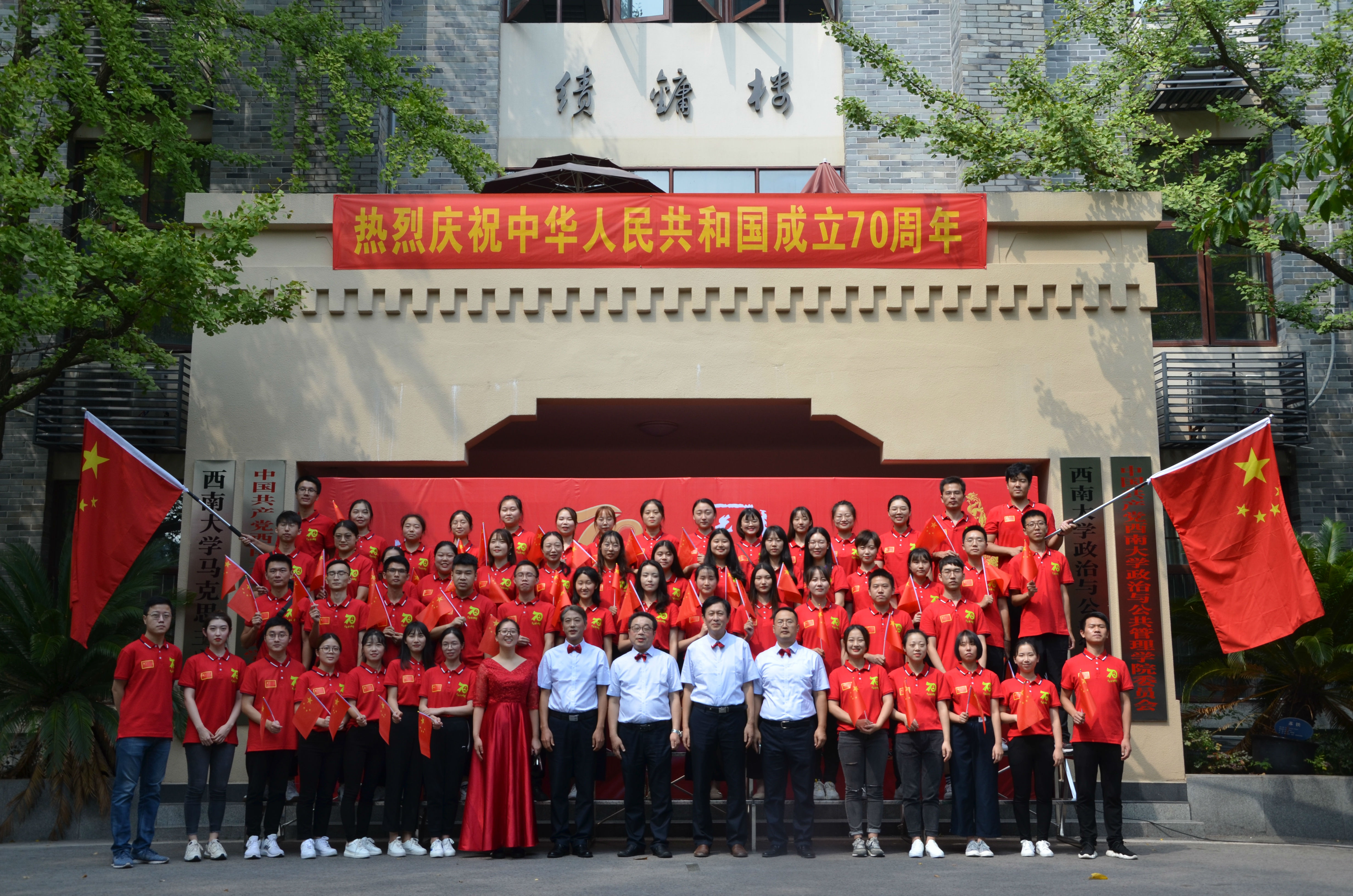 发布时间: 2020-10-15 09:37:47 已阅读:歌颂伟大祖国,唱响奋进之歌。9月27日中午,在喜迎祖国70华诞之际,“绩镛先锋”研究生党员志愿服务团在绩镛楼前组织开展了“青春告白祖国”主题诗歌朗诵汇演活动。学院领导、全体教职工、研究生参加了本次活动。