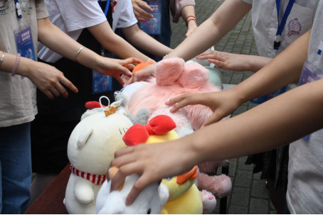 图2:同学们将毛绒玩具交予工作人员