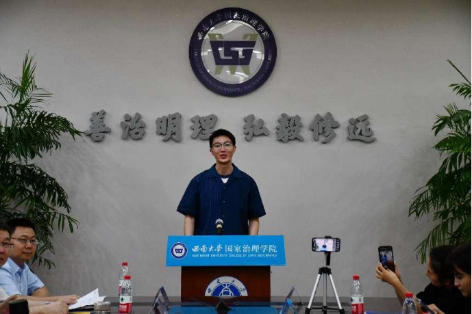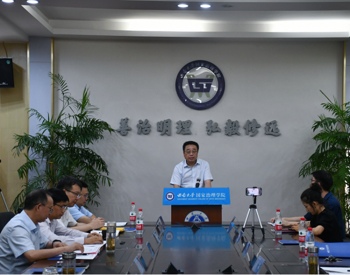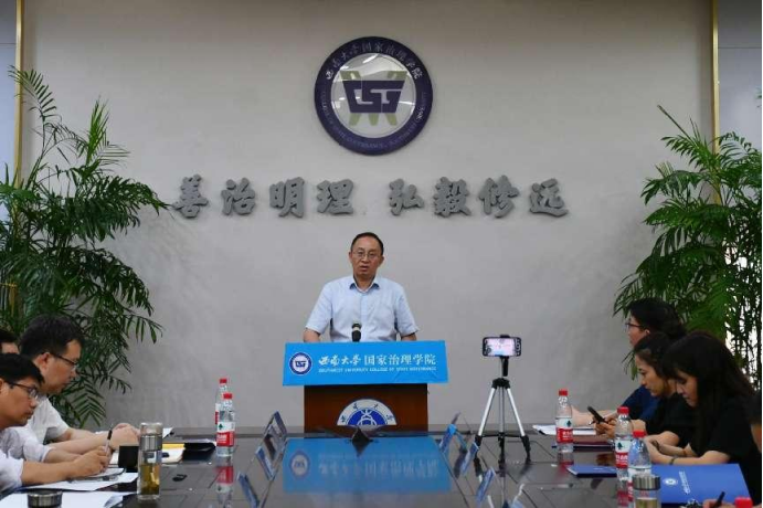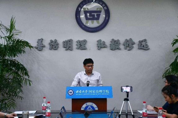 随后,学院党委书记吴江教授讲话。吴书记对新生成为西大国治人表示热烈地欢迎和衷心地祝贺。他希望新生秉承学院“修真才实学、养家国情怀”的精神,在锤炼善治本领和磨砺意志品质的过程中持续进化,同时也要牢记“善治明理、弘毅修远”的院训,怀揣善治理想、厚植善治情怀,锤炼善治本领,明事理、明情理、明真理,重新发现自我、释放潜能,开启人生新篇章。