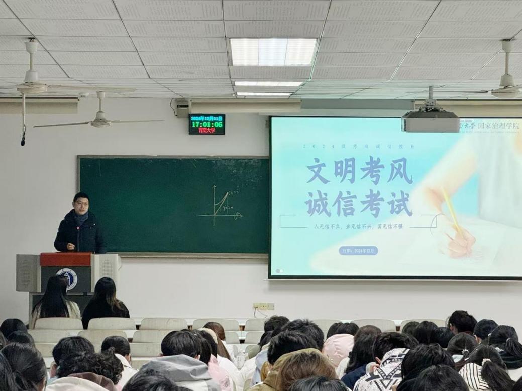 活动伊始,张永红副院长以严谨而亲切的口吻,向全体同学强调了诚信考试的重要性。他指出,诚信不仅是中华民族的传统美德,更是现代社会的基石。在学业中,诚信考试是对知识的尊重,对自我能力的真实检验,更是个人品德的体现。鼓励同学们树立正确的价值观,将诚信内化为自己的行为准则,用实际行动践行诚信考试的理念。