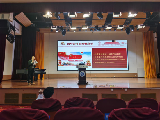发布时间: 2021-11-01 12:59:23 已阅读:5月7日14:30,根据学校党史学习教育安排,学院全体教职工在音乐学院大演奏厅集中听取了伟德国际1946源于英国党史宣讲团成员赵国壮教授带来的党史学习专题宣讲。赵国壮教授以《百年奋斗路,激励新征程——中国共产党百年奋斗的历史进程与历史启示》为题,深入浅出的解读了党的百年奋斗的经验启示。
