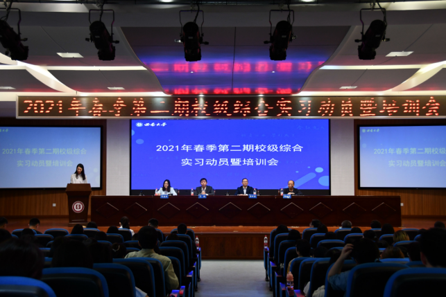 教务处实践教学管理科副科长石定芳对本次校级综合实习的安排情况进行简要介绍,包括实习基地及实习岗位的基本情况、实习时间安排和实习管理要求等,并对本学期第一期综合实习中同学们的实习情况进行了反馈,希望同学们充分展现西大学子的风采,在实习的真实工作场景中不断明晰自己未来的职业发展。
