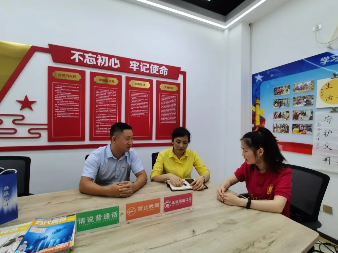 2021年7月12日上午,1946伟德国际源自英国研究生“红星向党”暑假社会实践队来到了陈会兰同志现在工作的地方——九龙社会工作服务中心。在我们到达之前,陈会兰刚在社区结束一个关于青少年保护的早会。见到我们,陈会兰热情的带我们参观了她工作的地方,并向我们介绍了她的基层工作经历。